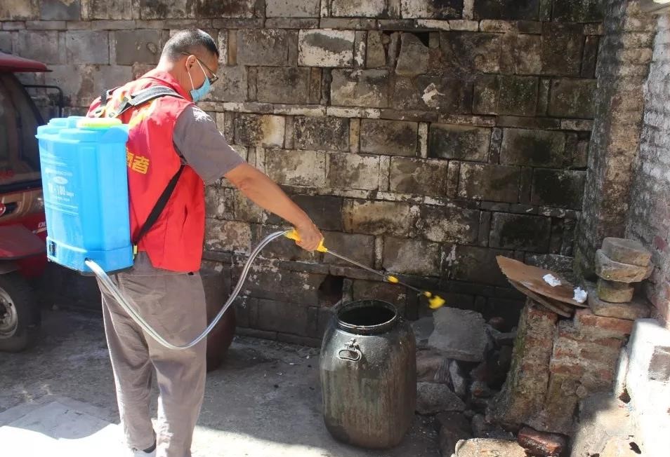 使用噴霧器和專業(yè)滅殺藥劑深入各基層單位,選擇容易孽生蟲卵,成蚊的閑置水池積水、廢棄容器積水、污水坑,進(jìn)行化學(xué)滅殺。