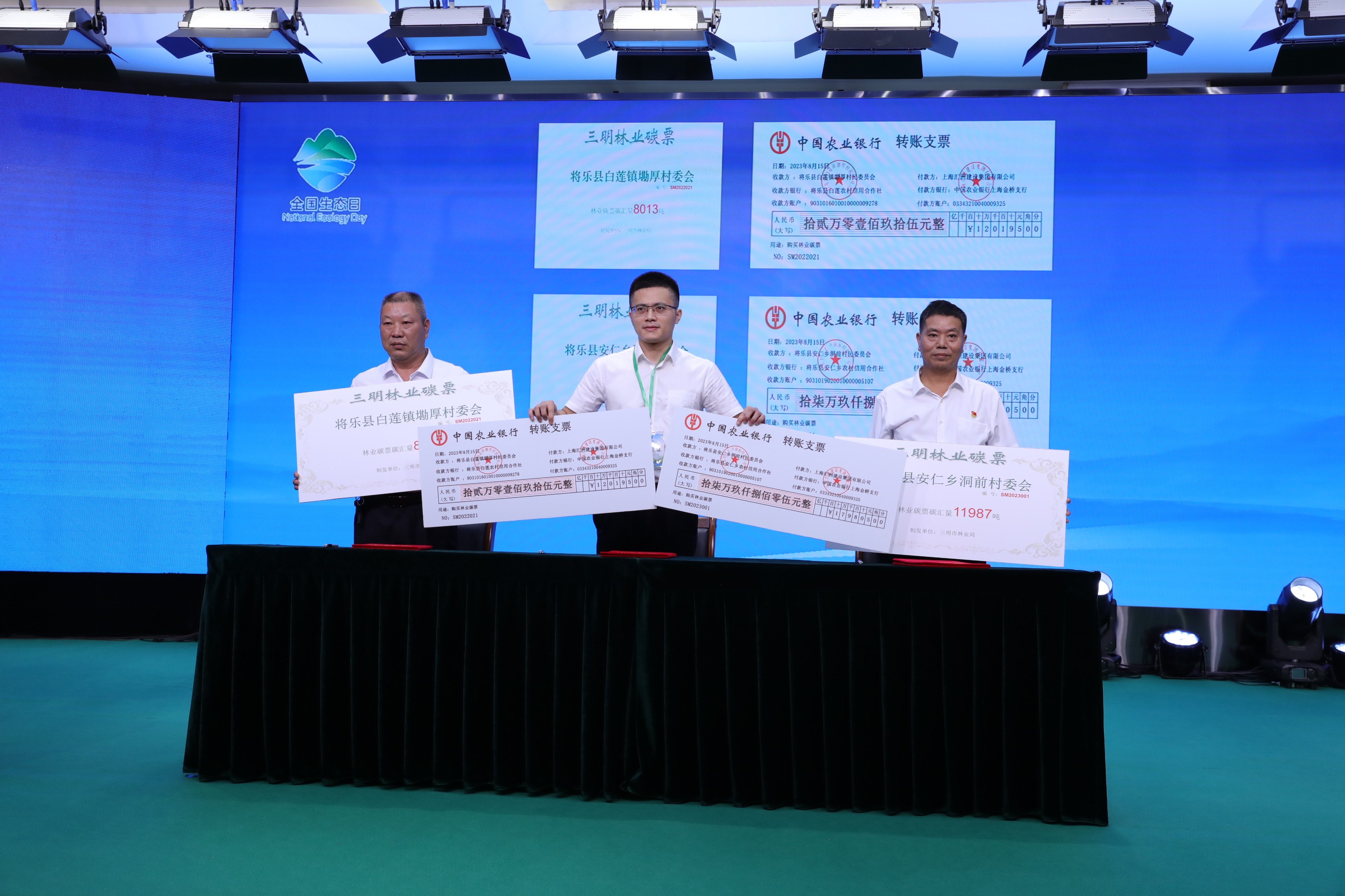 2023年8月15日全國生態(tài)日福建活動在將樂縣常口村舉行。福建金森引薦上海匯州建設(shè)集團(tuán)有限公司購買將樂縣白蓮鎮(zhèn)墈厚村及安仁鄉(xiāng)洞前村共計2萬噸林業(yè)碳票,完成全國首次林業(yè)碳票的跨區(qū)域銷售。